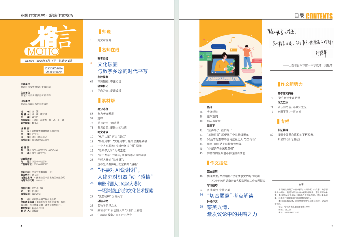 《格言·作文课》2026年3月精彩导读